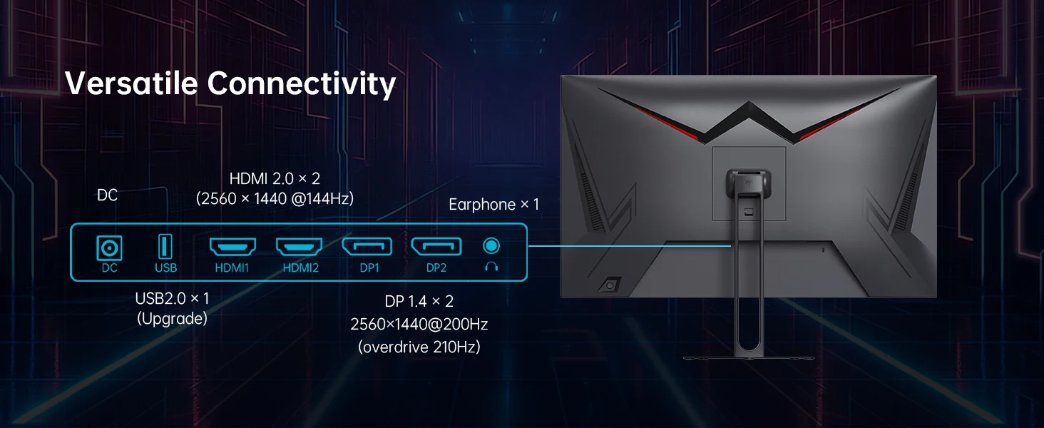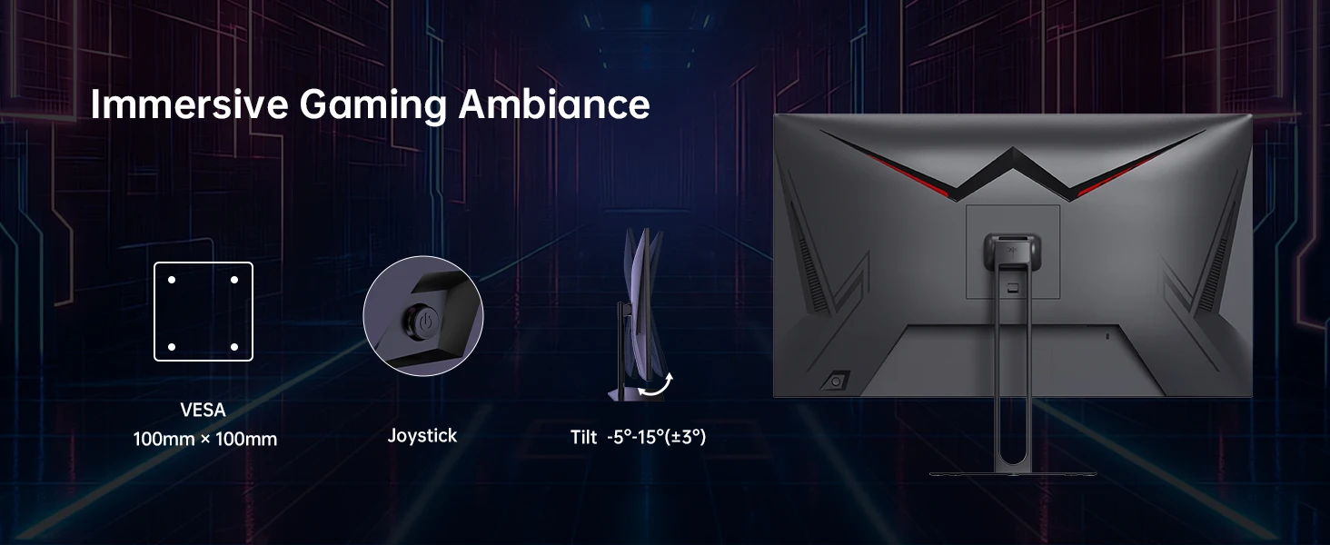[Multi-Scenario Adaptability] This 1440p gaming monitor features a multi-interface design (one DP 1.4 and two HDMI 2.0 ports), enabling seamless connectivity with PCs, laptops, PS5 consoles and other devices. Effortlessly switch between work, entertainment and creative modes with a single button. Equipped with a 100×100mm VESA mount.