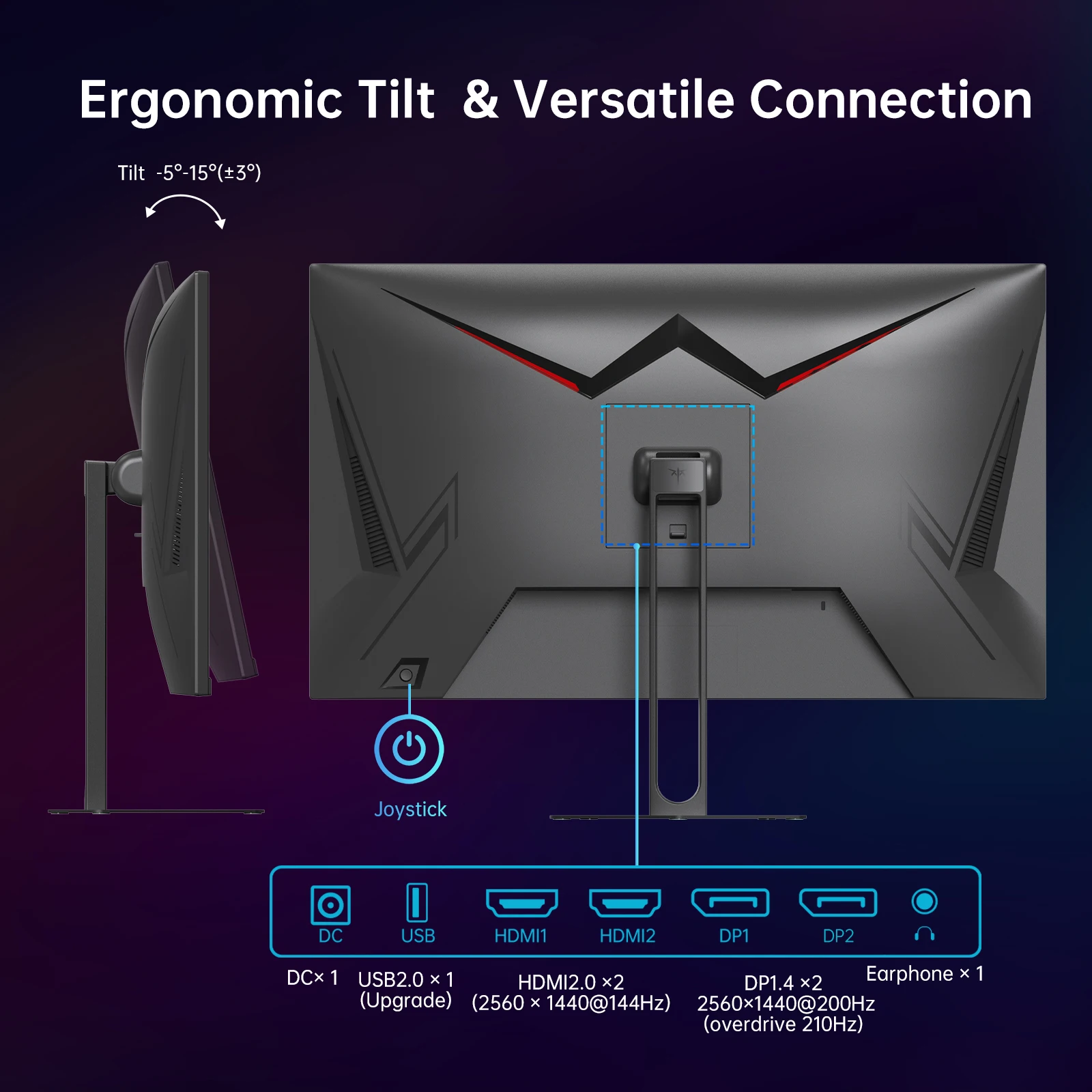 KTC Gaming Monitor 27 Inch | 2K@210Hz (Overlocking) | Built-in Speakers | Fast IPS Panel | 1ms Response Time (MPRT) | 450 cd/㎡ B