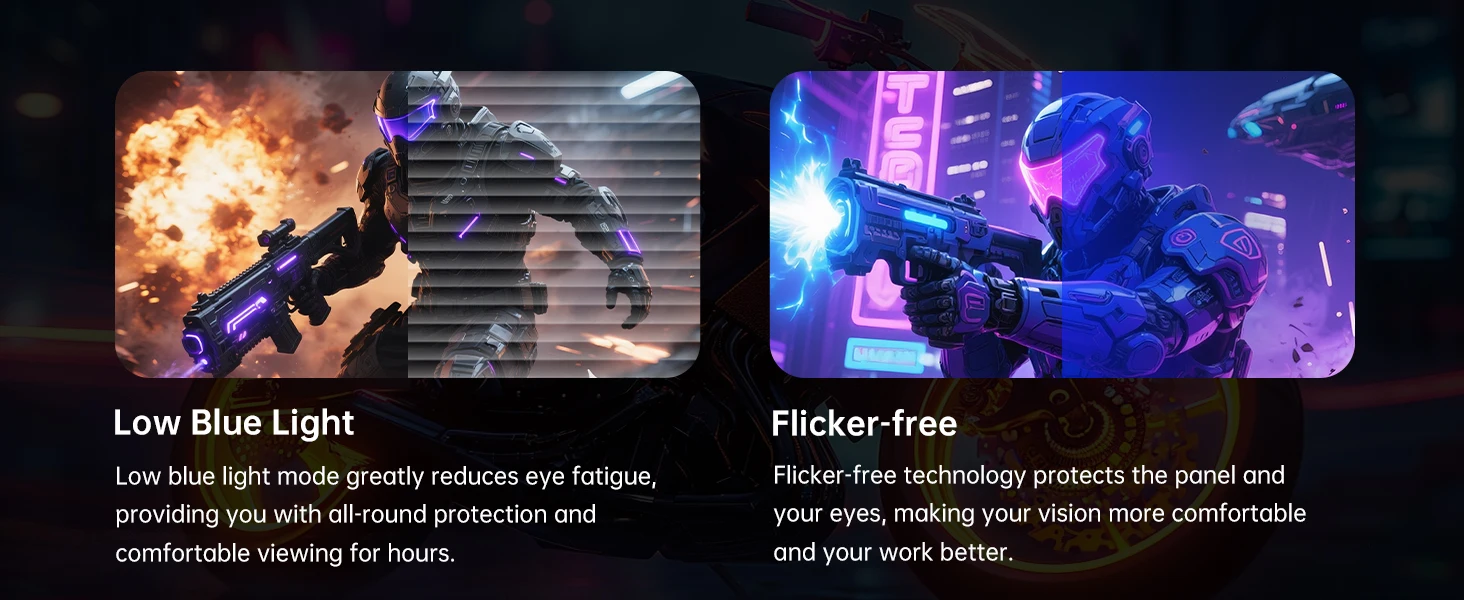 [Comfortable and Healthy Gaming Experience] Adaptive Sync technology to prevent screen tearing and stuttering. With hardware low blue light and flicker-free design, it reduces eye strain even during prolonged use. The tilt adjustment range is from -5° to 15°, allowing you to choose a comfortable angle and reduce work fatigue.
