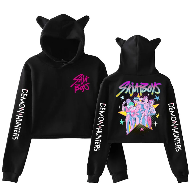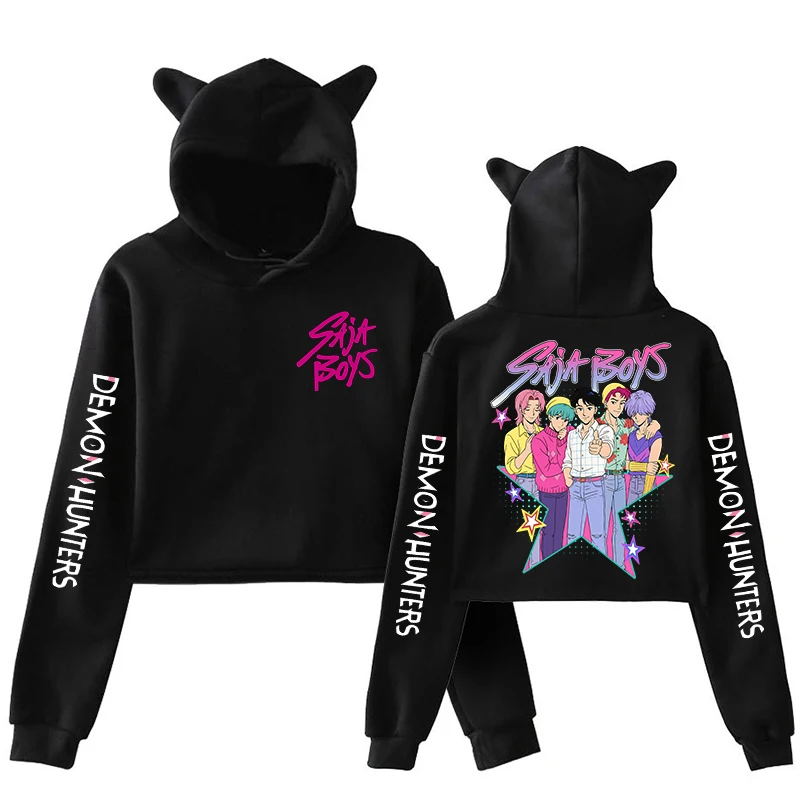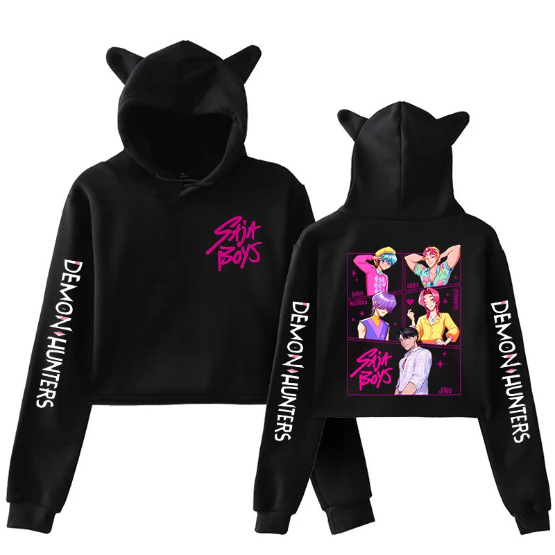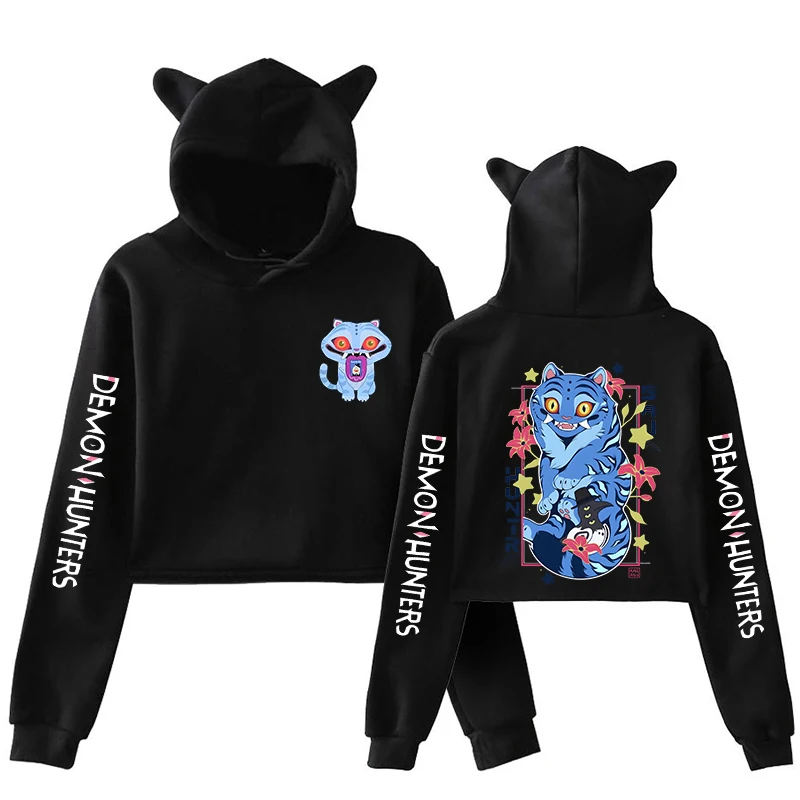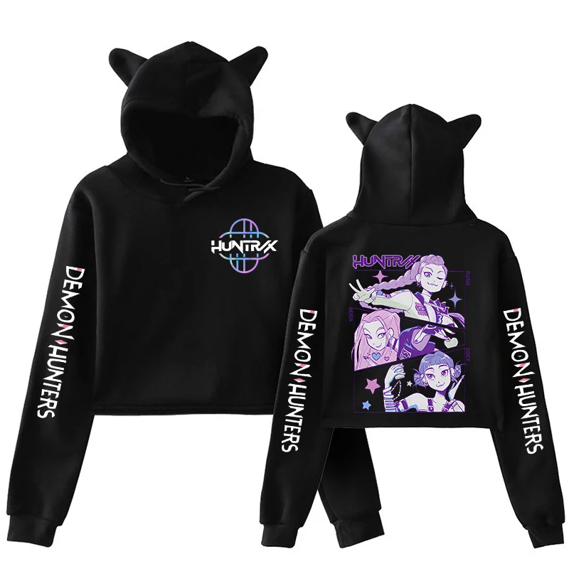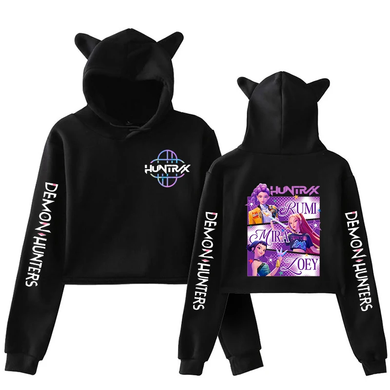 Elevate your streetwear style with this Women’s KPOP Demon Hunters Cat Ear Crop Hoodie. Designed for comfort and trendsetters alike, this cropped sweatshirt blends Kawaii fashion with Harajuku streetwear aesthetics — perfect for everyday wear, concerts, or casual outings.